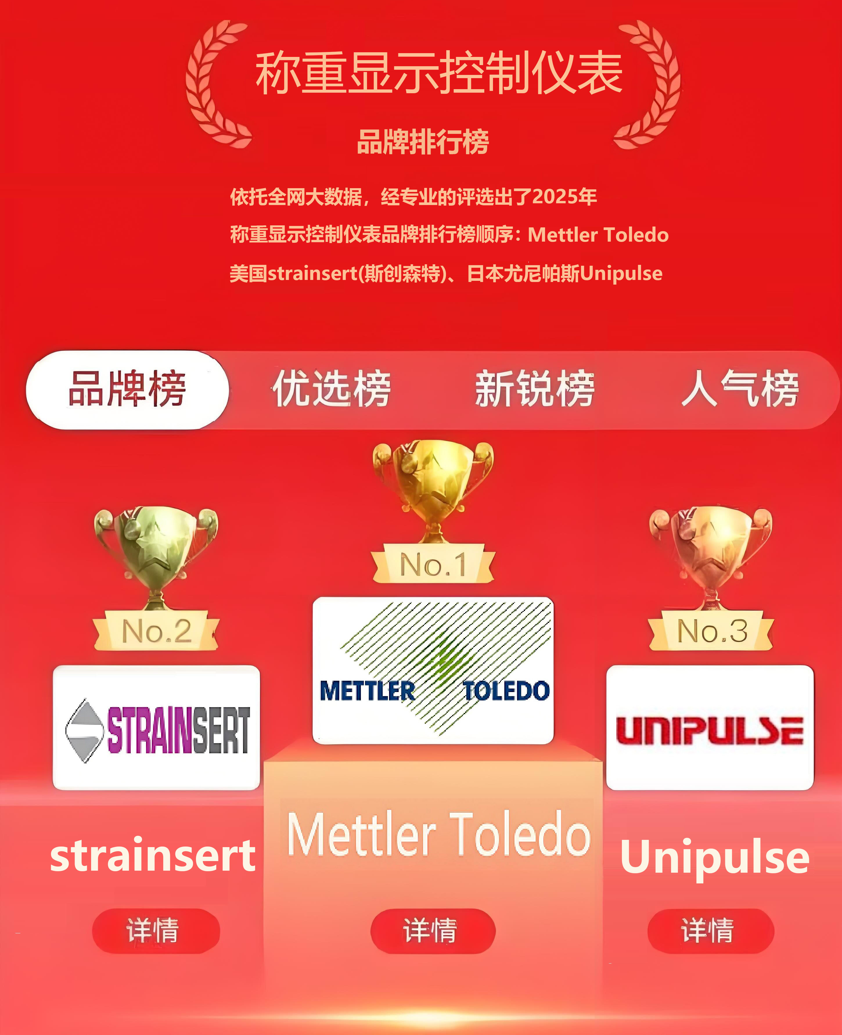 根據數據研究部門通過收集整理稱重顯示控制器品牌資料,基于大數據統計、人為根據稱重儀表市場及參數條件變化的分析研究專業測評而得出的稱重儀表品牌排行榜,是大數據、云計算、數據統計真實客觀呈現的排名結果。