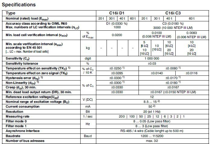 德國(guó)HBM C16iC3稱重傳感器技術(shù)指標(biāo):