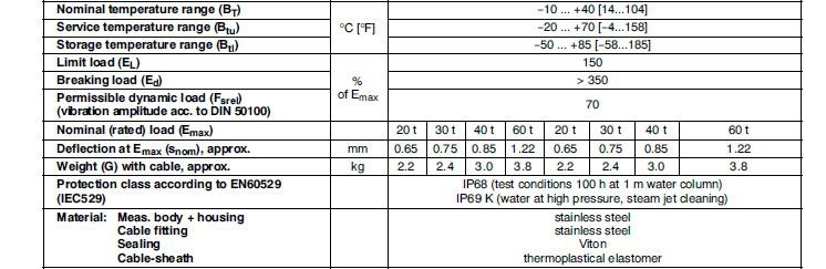 C16iC3稱重傳感器系列額定容量 C16iC3/20T C16iC3/30T C16iC3/40T C16iC3/60T