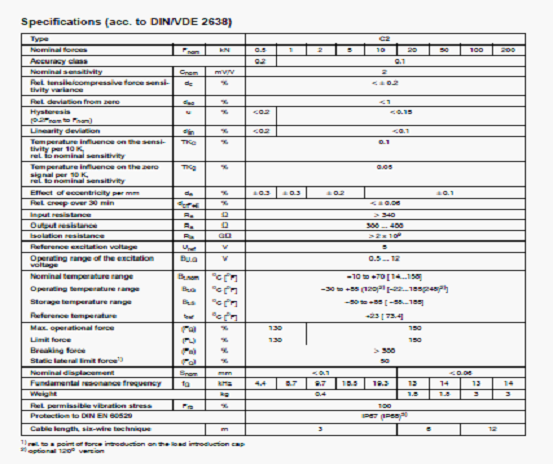 德國HBM C2/5T稱重傳感器技術(shù)參數(shù)圖: